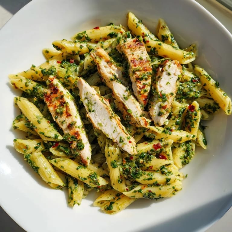 The chimichurri sauce keeps beautifully in a sealed jar in the refrigerator for at least a week, and the solid olive oil might solidify slightly but will reliquify at room temperature. Cooked pasta tends to absorb sauce as it sits, so I always reserve a little extra chimichurri to refresh leftovers before serving. The chicken stays moist for three to four days when stored separately from the pasta, which makes this recipe perfect for meal prep Sundays.