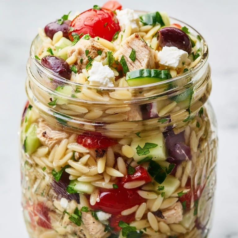 Save to Pinterest The first time I packed these jars for a week of work lunches, my cubicle neighbors kept asking what smelled like a Greek island vacation. Something about that combination of briny olives, fresh herbs, and creamy feta makes the whole fridge smell inviting. I started doubling the batch because my partner kept swiping jars for their own office lunches. Now meal prep feels less like a chore and more like packing little edible gifts to myself.