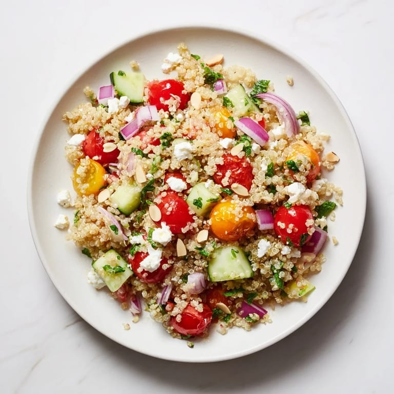 Rinse the quinoa thoroughly under cold water to remove its natural bitterness. Fluff quinoa carefully after cooking to keep it light and airy. Let the salad chill so the lemon vinaigrette infuses all the ingredients fully, enhancing the overall flavor.