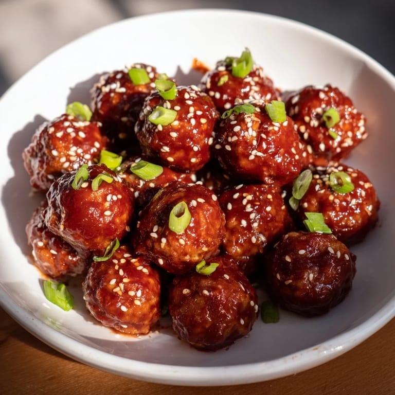 Save to Pinterest Juicy meatballs glazed with a sweet and spicy sriracha-honey sauce, perfect as crowd-pleasing appetizers or party bites.