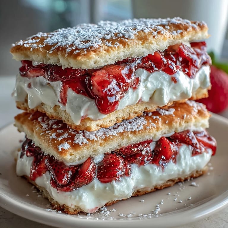 Save to Pinterest My sister called mid-summer asking if I could bring dessert to a picnic, and I had maybe two hours to figure it out. Strawberry shortcake felt ambitious, but then it hit me—why not compress all that charm into a cookie? I started experimenting that afternoon, thinking about how to keep the cream from seeping into the dough while letting the fresh strawberries shine through. The first batch taught me that timing everything perfectly matters more than I expected, and by the third try, I had something that actually worked. These little sandwiches became the unexpected star of that gathering, and now I make them whenever I want that summery feeling without the mess of actual shortcake.