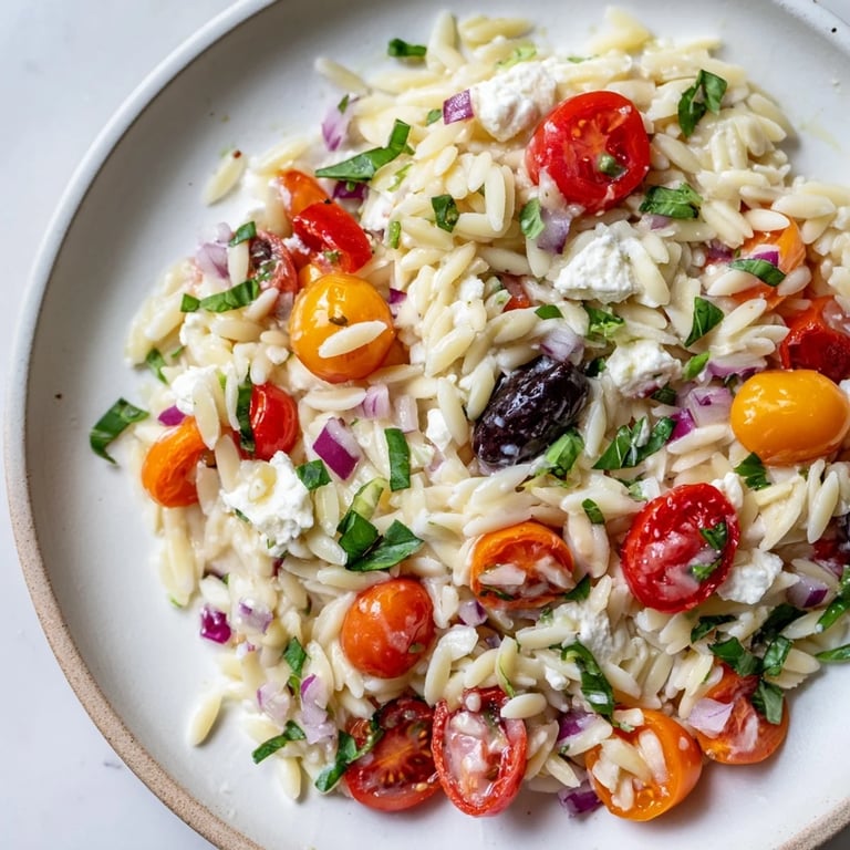 The beauty of this salad is that it's a foundation, not a prescription. I've added kalamata olives when I had them, stirred in roasted red peppers from a jar, even thrown in cucumber once when I wanted something crunchier. The core stays the same—the orzo, the feta, the herbs—but everything else is yours to adapt based on what's in your kitchen or what you're craving.